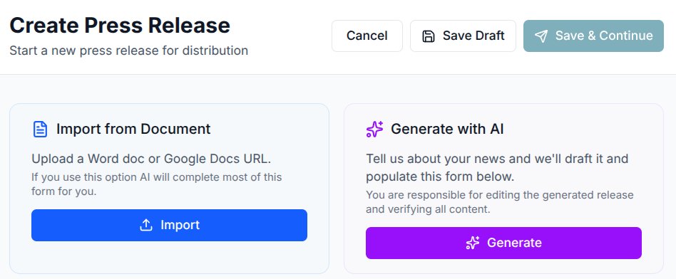 Don’t have a press release yet? Complete our AI form, and we’ll generate a draft for you with all the details prefilled. Just be sure to review the draft for accuracy.