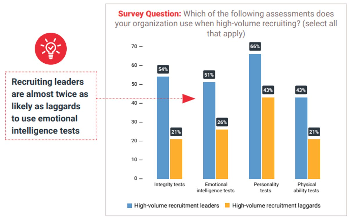 High-volume recruitment leaders are more than twice as likely as laggards to use integrity tests