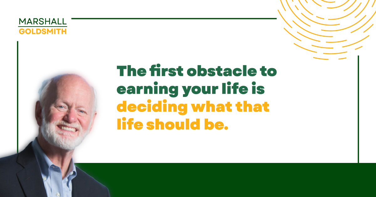 Goldsmith writes, “The first obstacle to earning your life is deciding what that life should be. If you don’t have your own ideas on the subject, you’re relying on luck or the assistance and insight of others. Ask yourself basic questions. A basic question is any question simply phrased that demands a deep, soulful examination of the facts and your abilities and intentions, one that elicits the deep, solid, hard-core truth.”