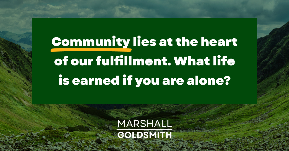 In a blog post concerning community, adapted from his new book The Earned Life, the renowned leadership expert and bestselling author Marshall Goldsmith talks about how community makes life more meaningful and even, in many cases, possible.