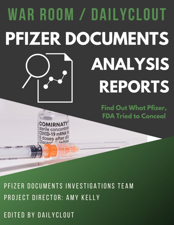 The War Room/DailyClout team of 3,500 medical experts helped rip the veneer off the myth that mRNA injections are "safe and effective.” The book features 50 reports written by The War Room/DailyClout Pfizer Documents Analysis Project using primary source Pfizer documents released under a court order by the U.S. Food and Drug Administration.