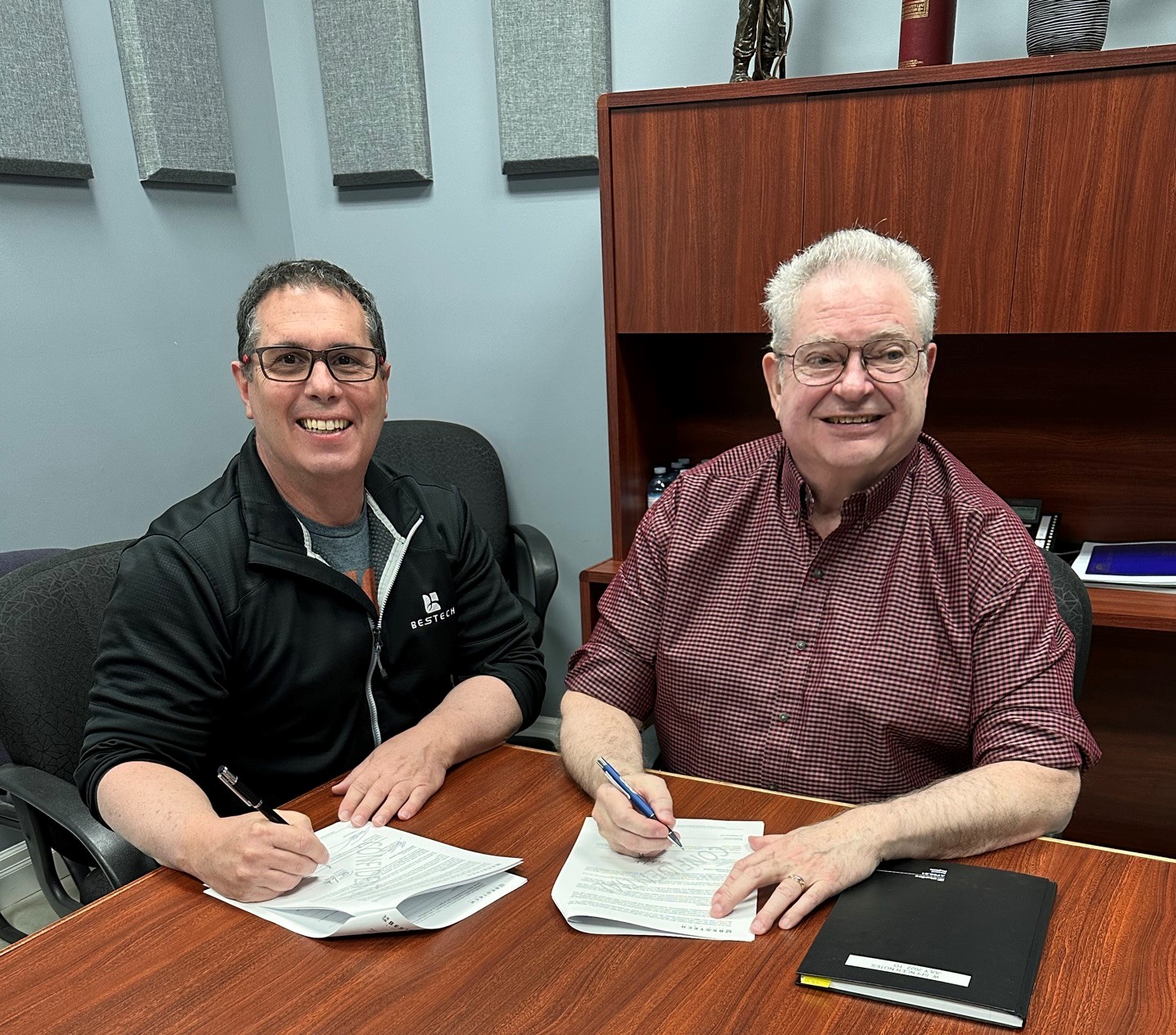 BESTECH President Patrick Fantin, and W.G. Spencer owner Willis Spencer signing the official contract.