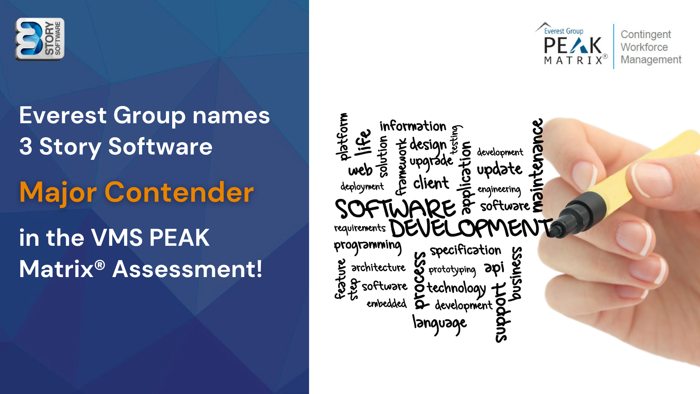 3 Story Software (3SS), a leading provider of contingent workforce management solutions, is proud to announce that it has been acknowledged as a ‘Major Contender’ in Everest Group’s 2023 Vendor Management System (VMS) PEAK Matrix® Assessment.