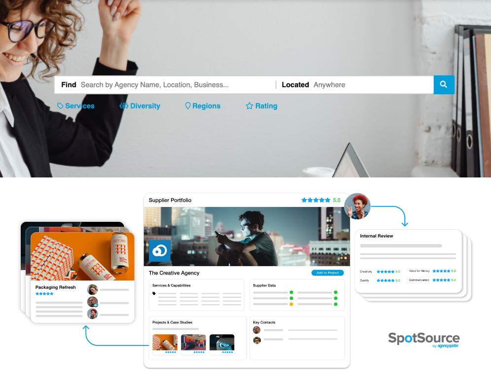 SpotSource Inc. (formerly Agency Spotter Inc.) is a cloud-based service supplier management (SSM) software platform that empowers companies to manage all aspects of their service provider relationships. SpotSource streamlines the entire procurement process, from discovery and selection to project management, invoicing, and performance reviews.