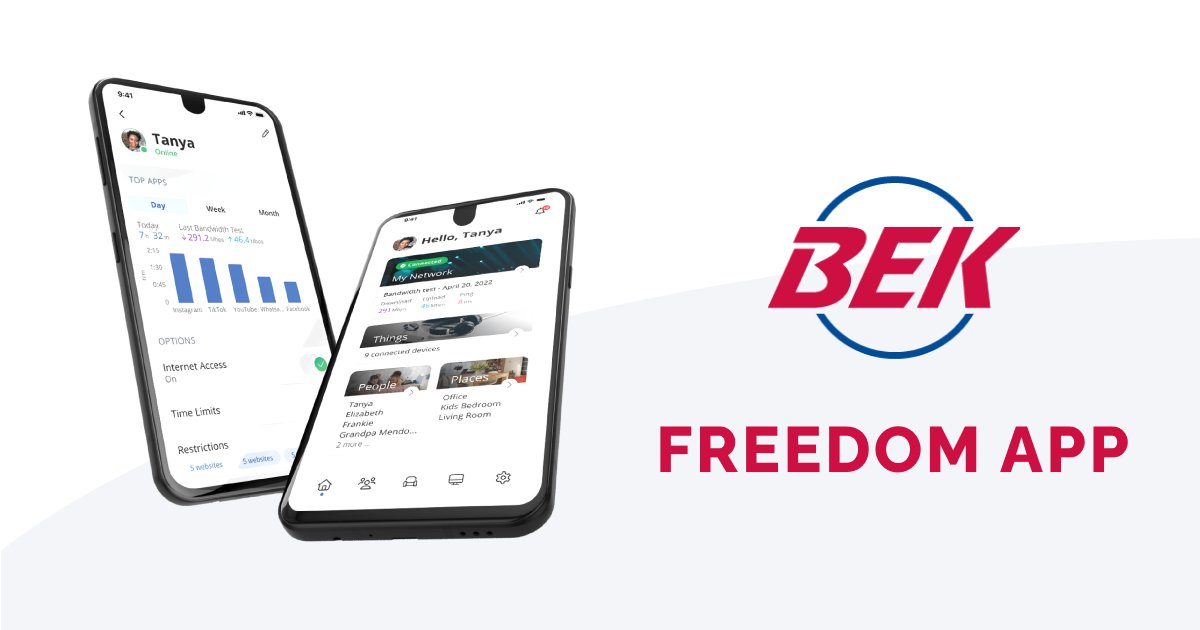 The BEK Freedom app provides customers with complete control over every aspect of their home Wi-Fi and all connected devices. Among its numerous features, active threat protection enables users to view total threats, intrusions, and viruses blocked over time.