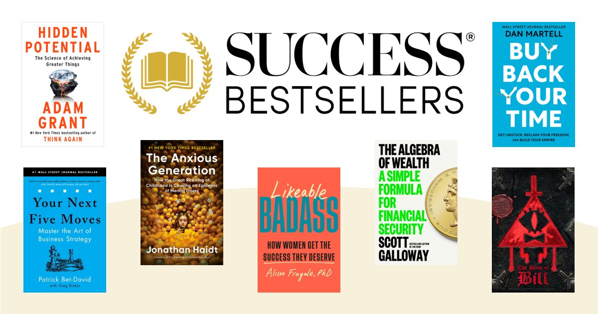 SUCCESS® unveils its latest weekly bestseller lists, showcasing top books across eight categories including Business, Leadership, and Women In Leadership. Adam Grant’s Hidden Potential dominates the Business and Leadership categories, while Scott Galloway’s The Algebra of Wealth takes the lead in the Money category.