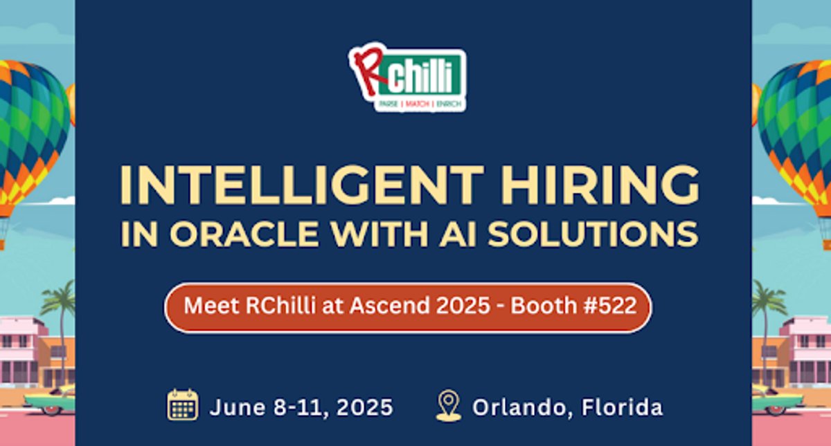 RChilli is pleased to announce its participation in Ascend 2025, from June 8-11, 2025, at Rosen Shingle Creek, Orlando, Florida. The RChilli team will be available at booth #522, presenting their comprehensive suite of AI-powered solutions purpose-built for Oracle HCM.