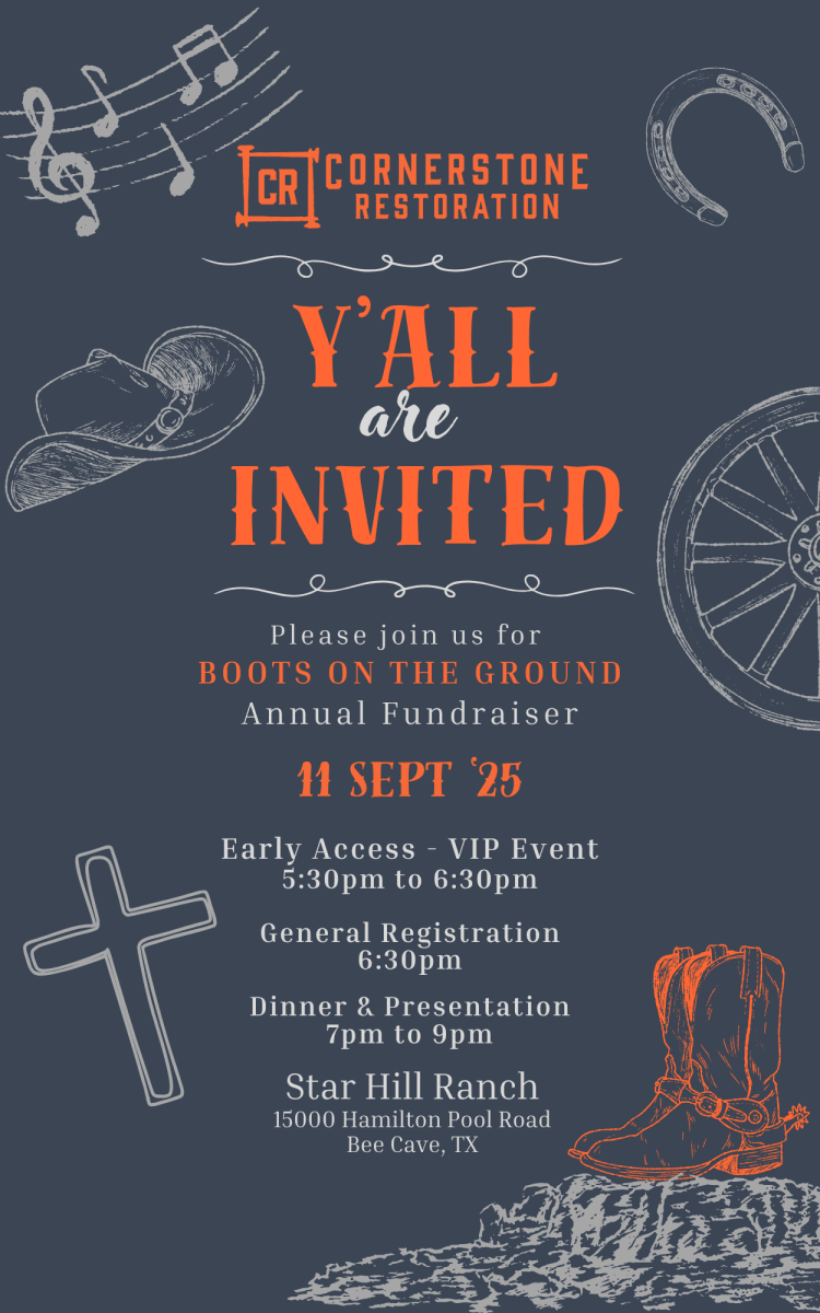 Cornerstone Restoration will host its first Boots on the Ground live auction at Star Hill Ranch in Austin to fund construction projects serving vulnerable community members. Supported by Cowboy Auctioneer, the event promotes hope through faith-driven service. Learn more: cornerstonerestoration.org.