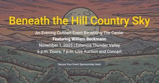 The Center hosts "Beneath the Hill Country Sky" on November 1, 2025, at Estancia at Thunder Valley in Boerne, Texas. The exclusive benefit concert features William Beckmann and supports programs for aging and older adults, including Meals on Wheels, social activities, and health services, fostering community and independence.