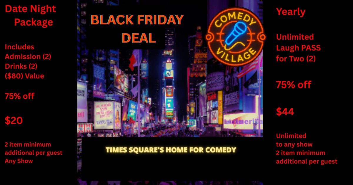 Comedy Village in Times Square is launching two powerful Black Friday 2025 deals that give locals and visitors a rare chance to enjoy top-tier comedy at a fraction of the normal cost. These offers run from Black Friday through Cyber Monday. Once the window closes, buyers will wait until next year to see savings this strong again.