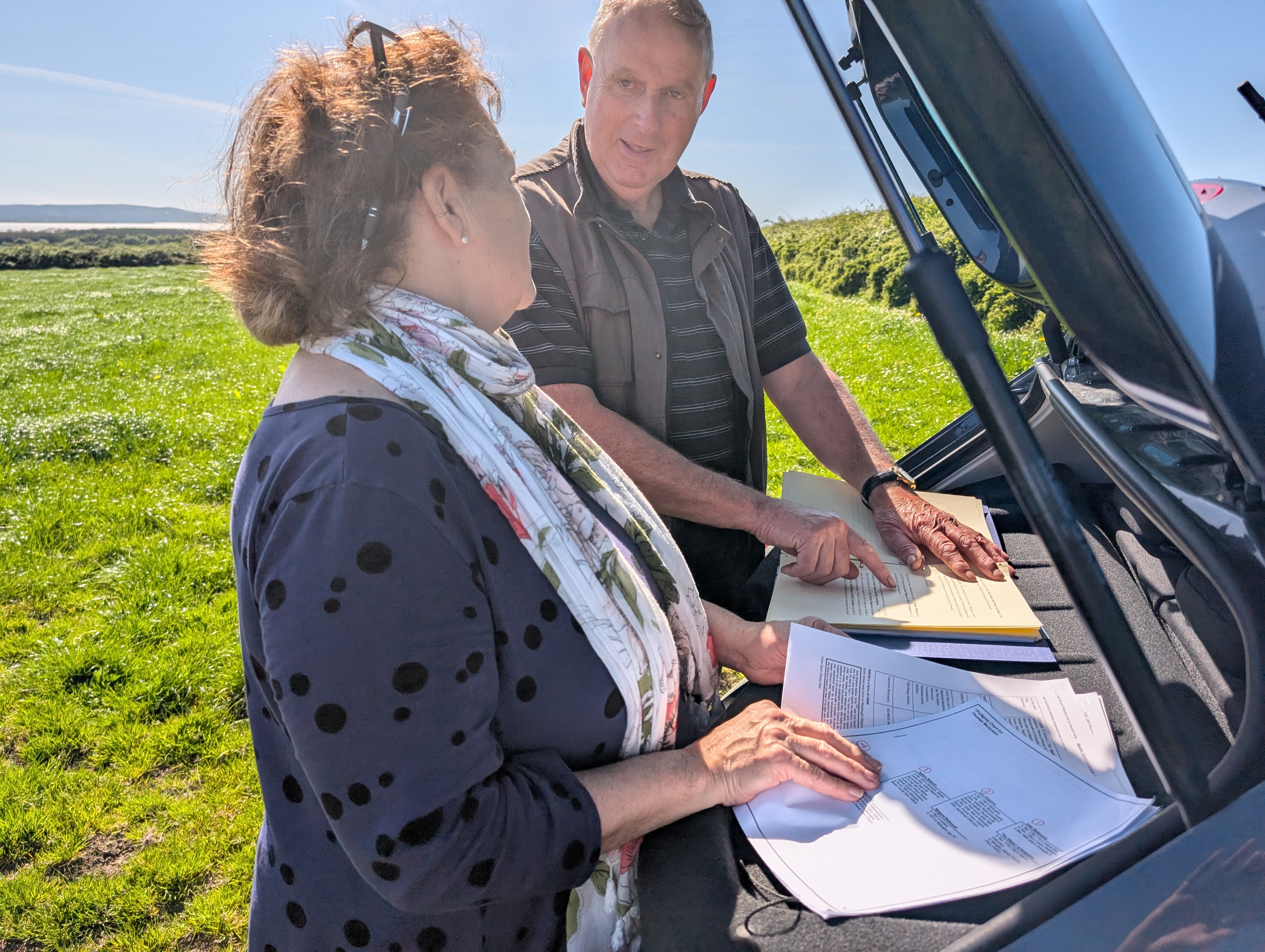 Maureen in 2025 outside a cemetery in County Clare, discussing family research.