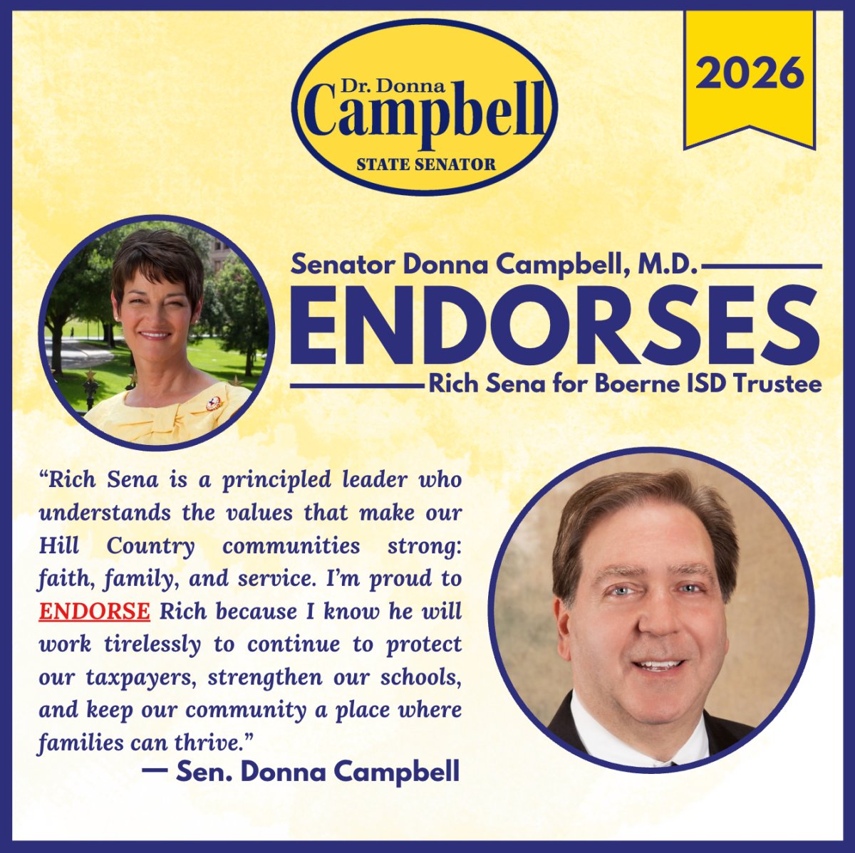 - Rich Sena Seeks Re-Election to Boerne ISD Board, Cites Growth & Fiscal Stewardship