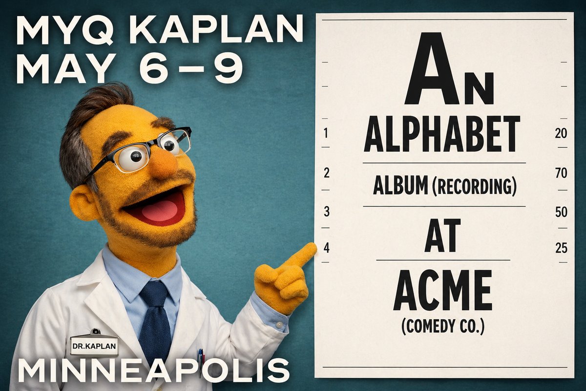 - Myq Kaplan's next project is a live stand-up album titled 'An Alphabet Album At Acme,' which he will record at Acme Comedy Company in Minneapolis from May 6–9, 2026. The album features 26 jokes, each corresponding to a letter of the alphabet, within a one-hour performance.