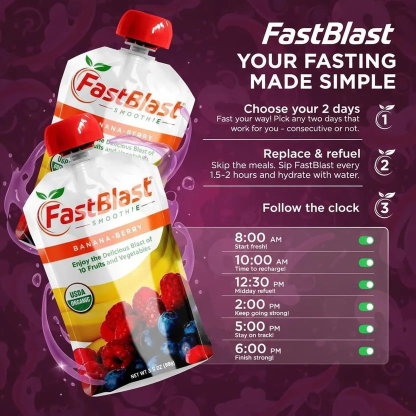 Intermittent fasting centers on when you eat, but maintaining balanced nutrition during eating windows remains essential. FastBlast smoothie pouches are designed to support this approach with a blend of plant-based ingredients, fiber, and protein that can help individuals stay satisfied and energized.